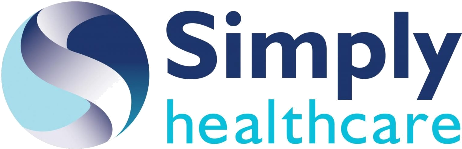 Simply Healthcare logo with a blue and white swirling emblem and blue and teal text