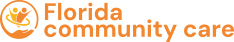 Logo with two abstract human figures in pink and orange within a circle, and text that reads 'Florida complete care' in pink and black.
